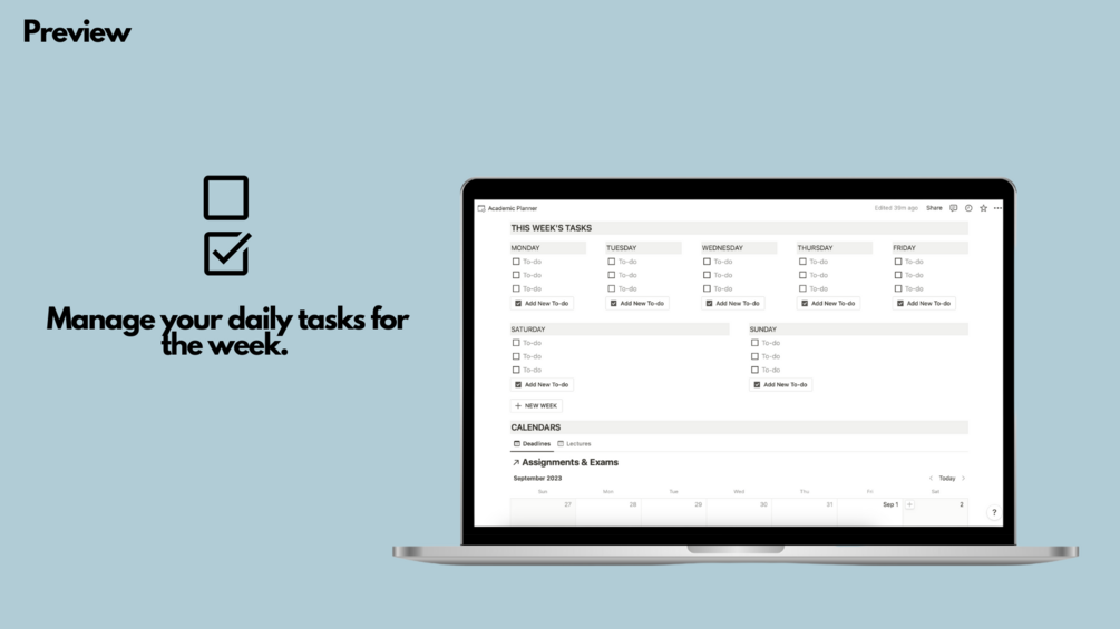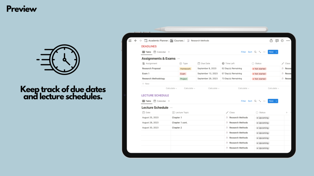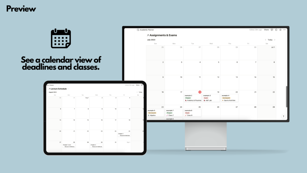 This Notion template is a straight-forward digital planner designed to help you keep track of your tasks, organize your classes, and stay on top of due dates.
