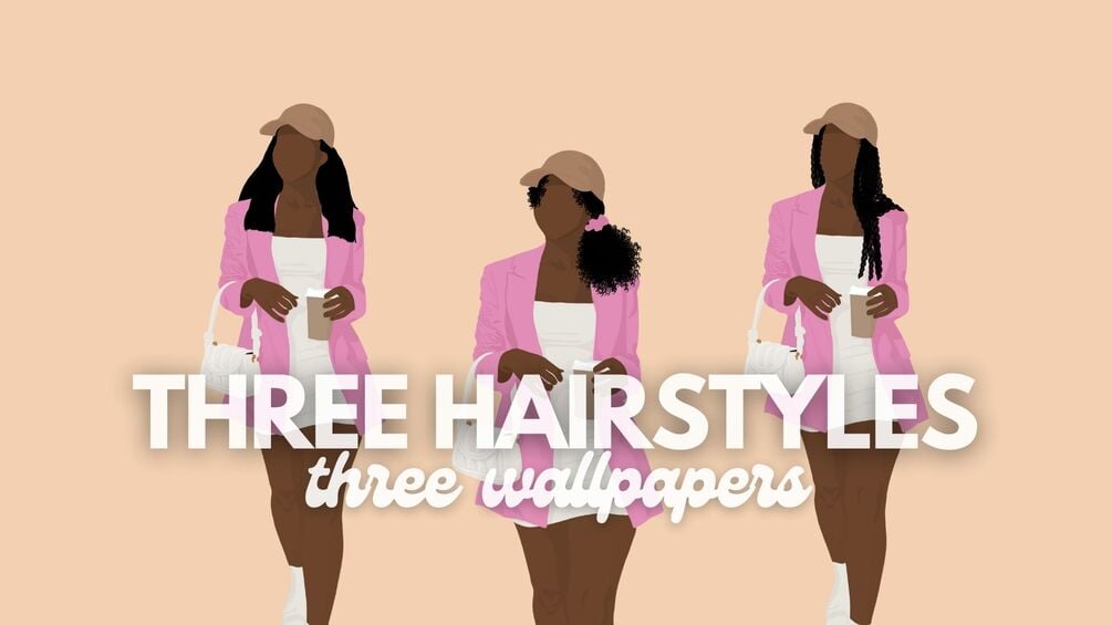 This 3-pack wallpaper set is perfect for those who want something cute but simple! It features a digital illustration of a brown skinned girl with three hairstyle variations.
