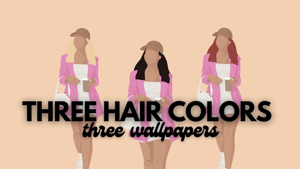 This 3-pack wallpaper set is perfect for those who want something cute but simple! It features a digital illustration of a light complexioned girl with three hair color variations.